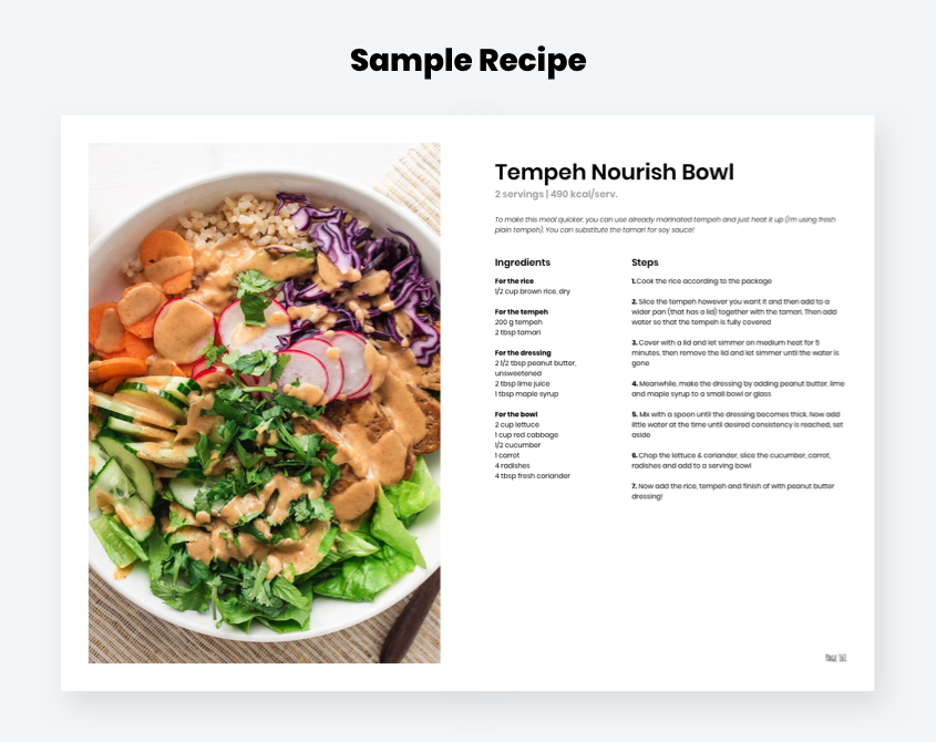 All of my 104 recipes are vegan, easy, composed with passion, focused on whole foods, and delicious. There is no need for compromising on taste to eat healthy.