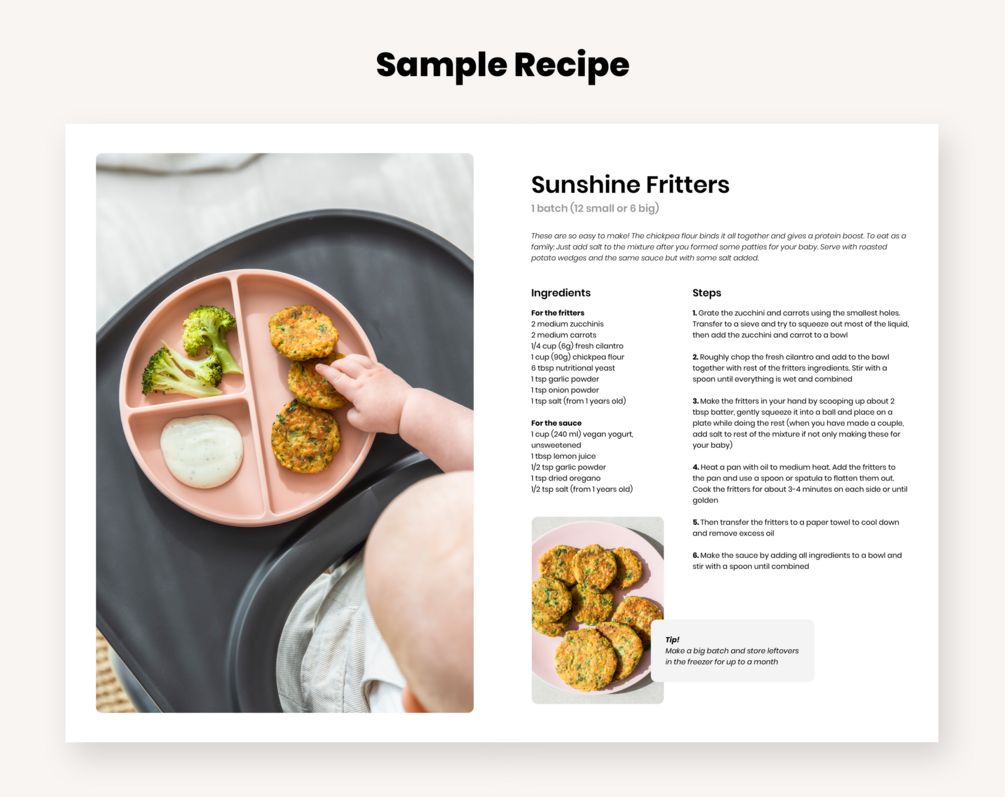 - 100% plant based wholesome recipes designed for BLW (baby-led weaning)